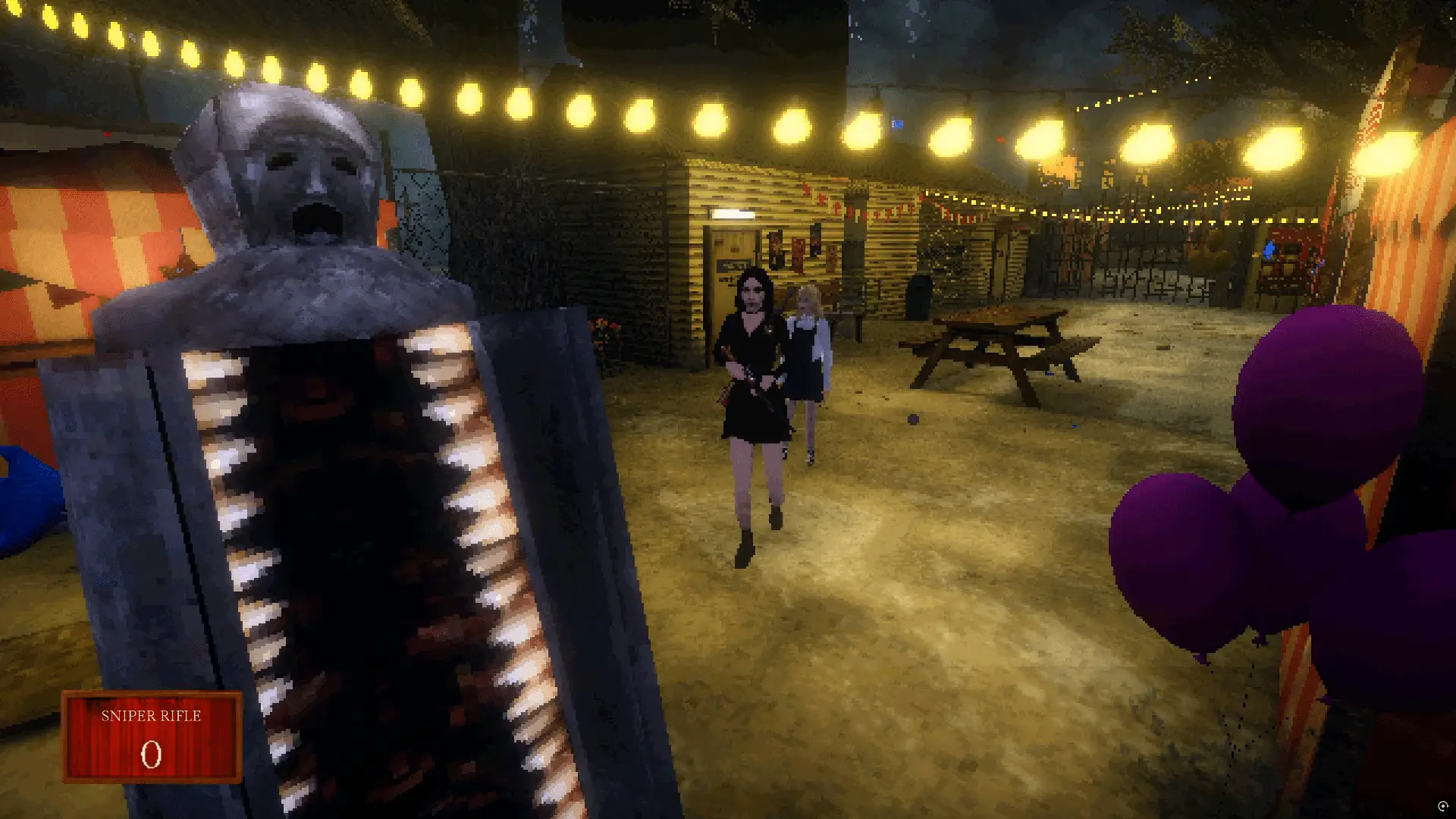 Carnival Massacre also features a camera, but here it is used to stun enemies. This is honestly one of the best avoidance mechanics I have seen in a survival horror game. It feels quite ingenious. There are also a few traditional weapons to use, including a shotgun, handgun, sniper rifle, and flamethrower